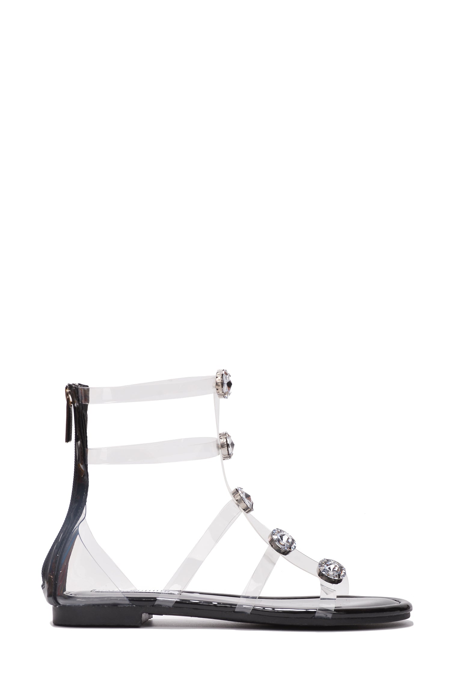 Be a showstopper in the Azalean sandals. These chic and sultry sandals feature form-fitting clear straps,a zip closure,and a gem trim for a hint of sparkle. Show off your sexiness and confidence in the Azalean sandals that come in black and gold.
