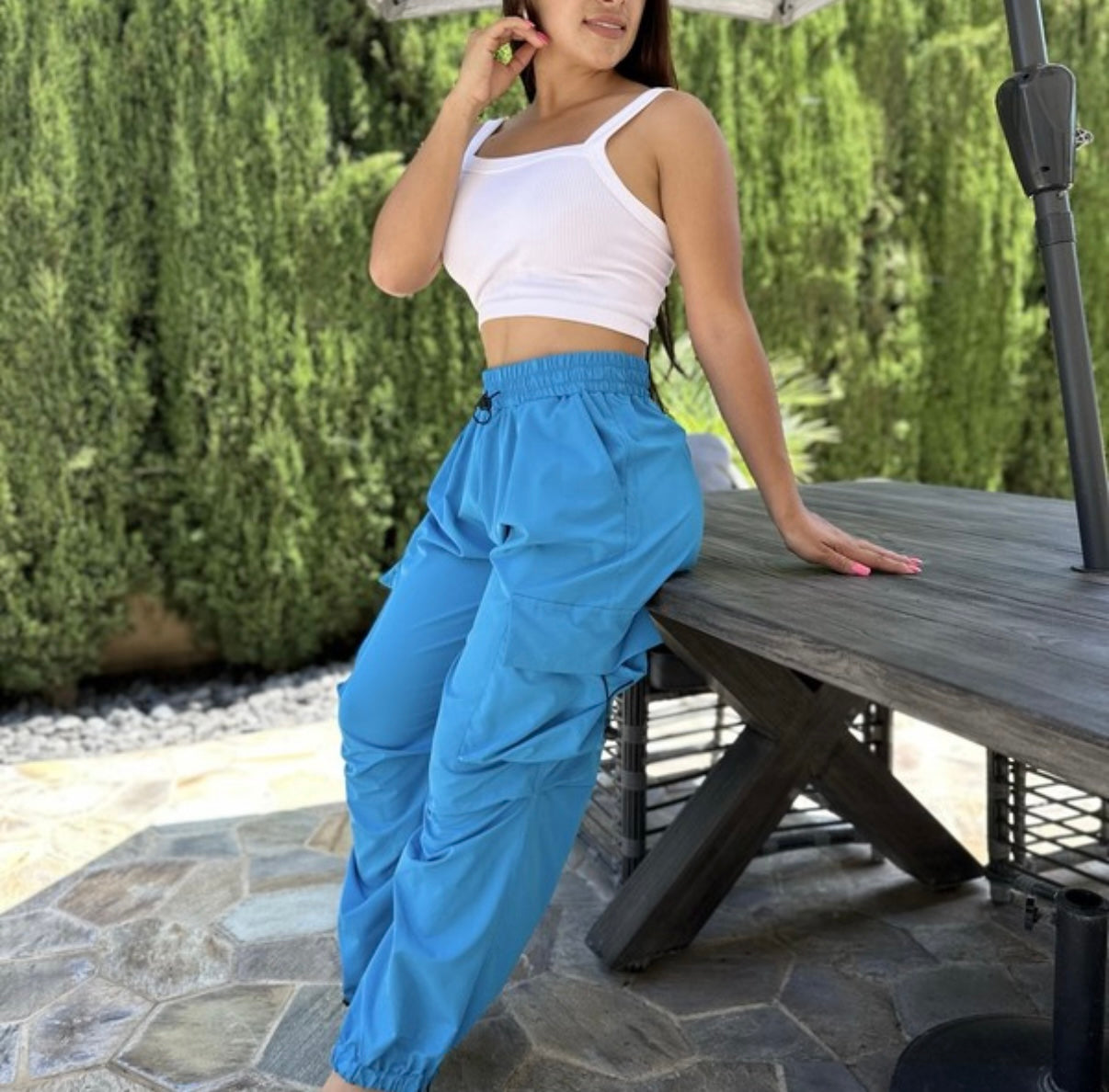 Relaxed parachute fabric -Pull to tighten elastic waist band and leg opening -Cargo Pocket *Model is wearing a size Medium*